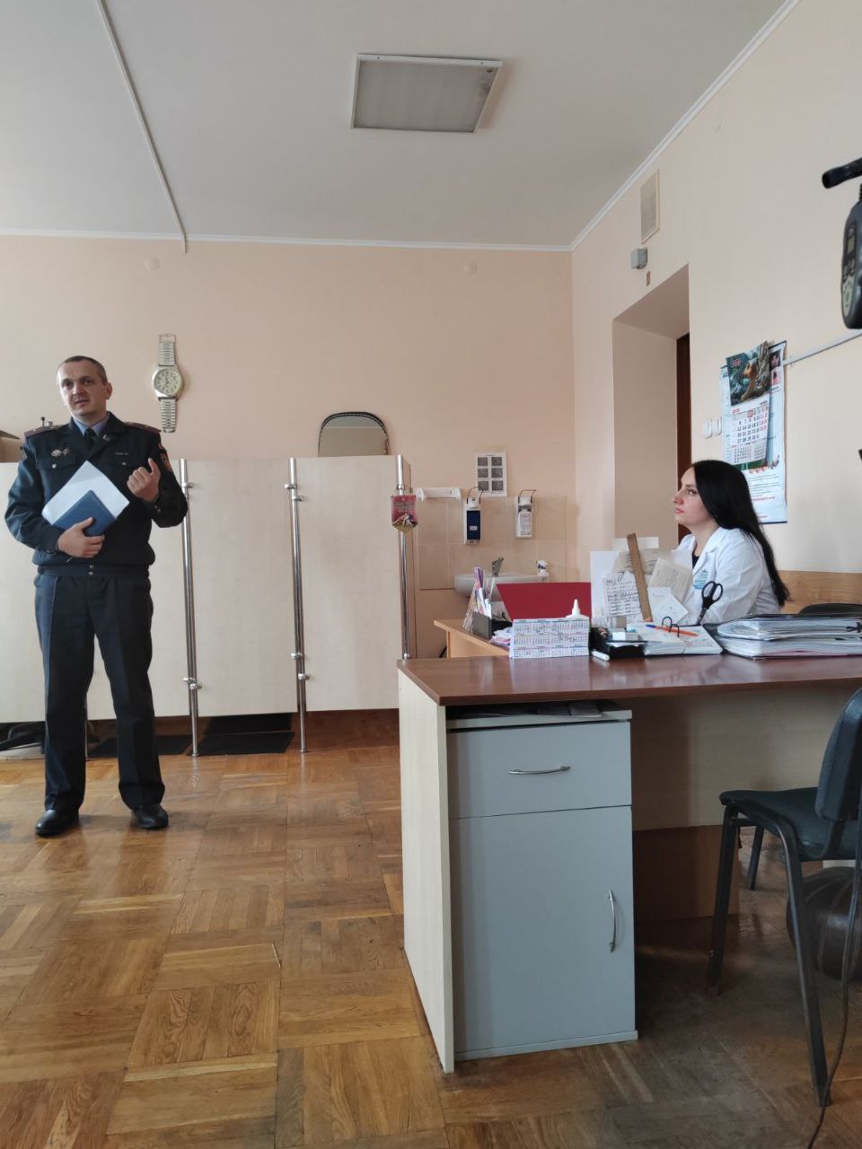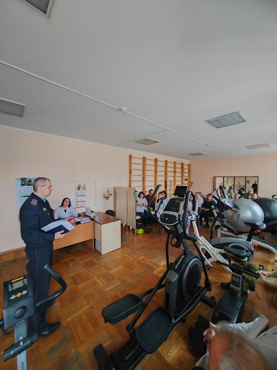 06.11.2025 на базе УЗ «ГОДСМ» прошёл семинар на тему :» Действия работников в условиях чрезвычайных ситуаций» с участием майора милиции Крука И. И., на котором были в том числе освещены вопросы профилактики киберпреступности и правонарушений.